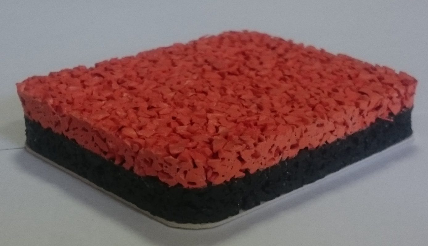 Nawierzchnia składa się z dwóch warstw. Dolna warstwa to mieszanina granulatu gumowego o granulacji 1-4 mm, połączonego lepiszczem poliuretanowym, jednoskładnikowym. Układana jest mechanicznie, bezspoinowo, przy pomocy rozkładarki mas poliuretanowych. Grubość warstwy ok. 7-8 mm. Górna warstwa składa się z granulatu EPDM o granulacji 1-3 mm, połączonego lepiszczem poliuretanowym, jednoskładnikowym . Układana również mechanicznie, bezspoinowo, przy pomocy rozkładarki mas poliuretanowych. Grubość warstwy ok.7- 8 mm.